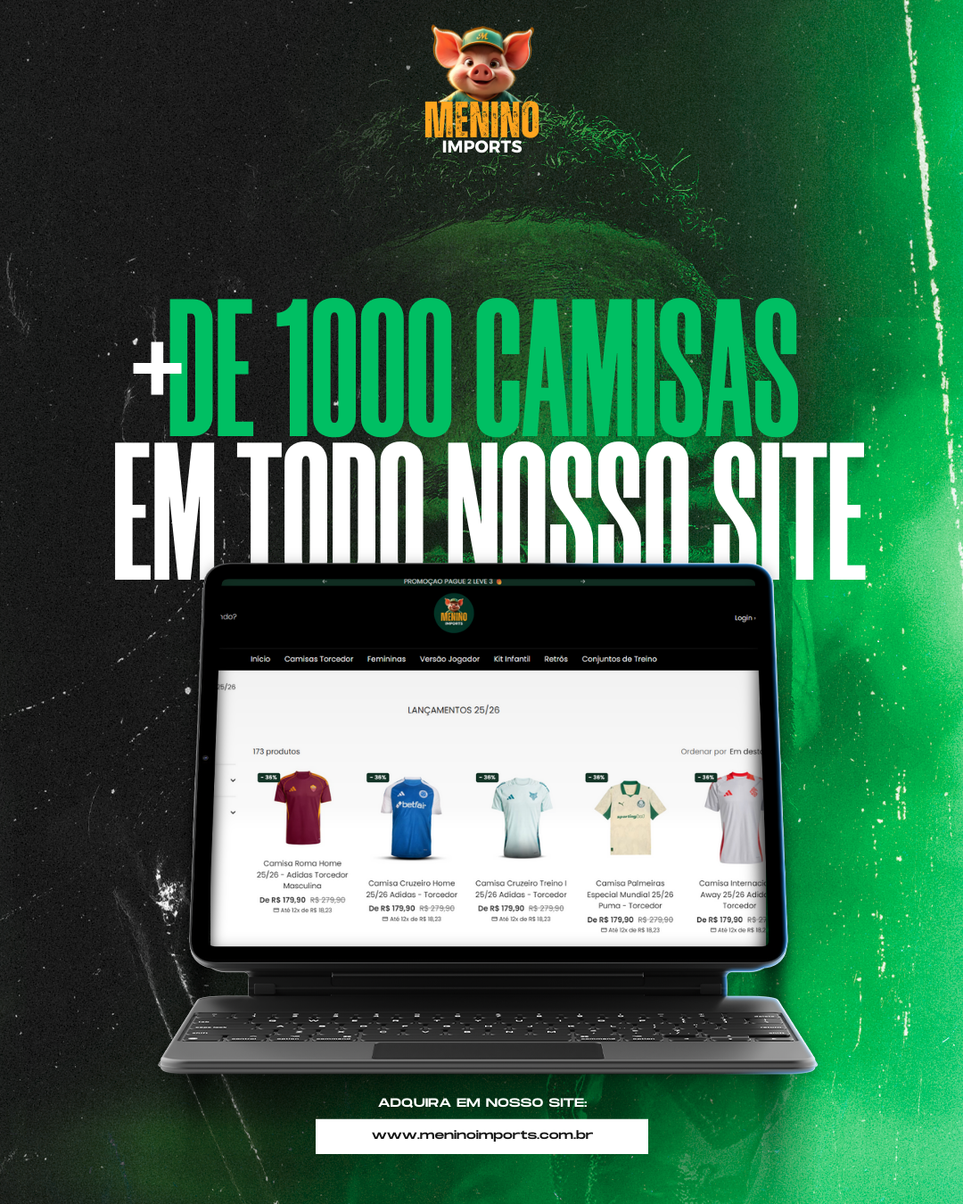NÓS DA MENINO IMPORTS, entendemos a paixão e o orgulho que você tem pelo seu time de coração. É por isso que ESTAMOS AQUI! Temos uma ampla seleção de ARTIGOS ESPORTIVOS para satisfazer seu desejo por futebol. Nossa loja é reconhecida por sua TRANSPARÊNCIA, QUALIDADE E SUPORTE.